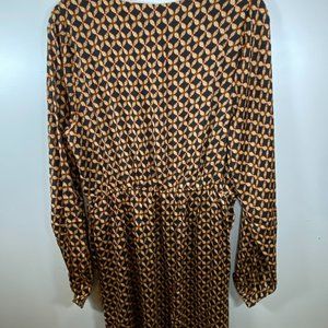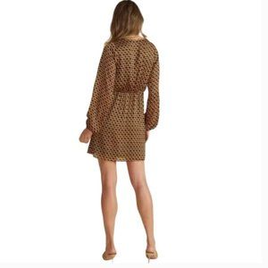 Runs true to size, printed satin mini dress, partially lined with button detail at bust, elastic cuffs, and zipper back