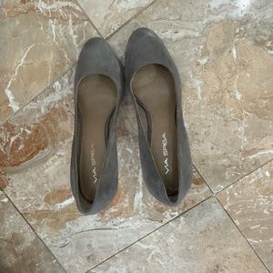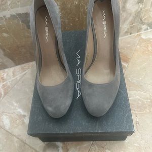 Brand new Via Spiga Jill Granite heels grey suede with black heel