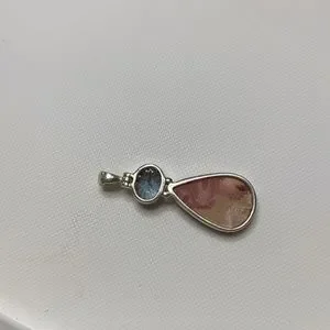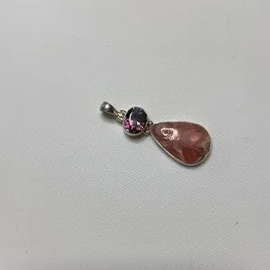 Quite colorful pendant with pretty in pink Rhodochrosite and Mystic Topaz sparkly with pink and purple and green blue. All done in .925 as shown in pictures