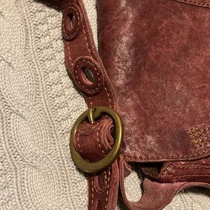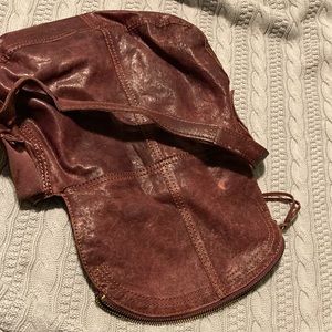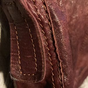 Lucky brand leather Italian ,purse, lots of storage. Zipper on outside has a lot of storage area. Two pockets, zipper on inside that has space. Strap 24”, length Approx 14”, Approx 10”. Leather varies in color Italian leather color changes wear with time, but leather is very good. Color plum. Good condition. Bundle up to 5 lbs Snd save Thank you for viewing my closet.