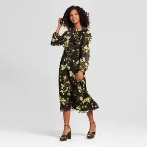 Who What Wear Black Floral Dress Long Sleeve Size XS