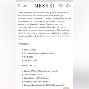 NWT Meshki Black Sima Faux Leather High Waisted Pants