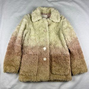 Anthropologie Ombre Faux Fur Pale Pink and Cream Botton Front Jacket Size XS