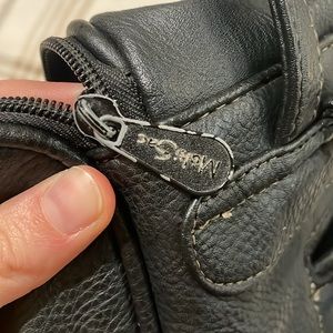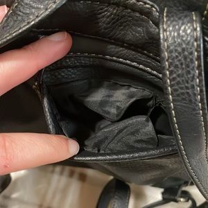 Good, used condition! Many pockets and very spacious. Approximately 10” by 10”. Some chipping on the zippers (pictured). Back pouch has a rip (see last picture).