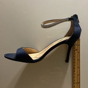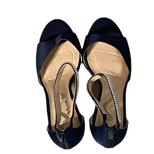 Blue Nima Heels, Navy blue size 9 medium\39, Sandals with the embellished heel strap 3.5 inch heels