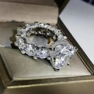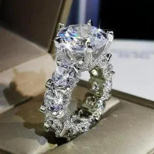 NEW 925 Silver Round Diamond Luxury Eternity Ring