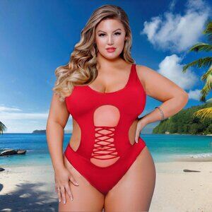 Plus 1Pc Swimsuit Womens Size 1x 2x 3x 4x Red One Piece High Leg Swimwear