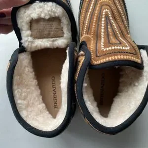 Complete your cozy feminine look with this absolutely cute Bernardo Drea bootie. Embroidered patterns give a distinctive edge to this slip-on bootie that has plush shearling warmth for a winter-ready style..