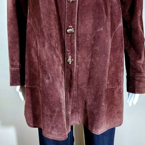 VTG FOX RUN Burgundy Brown Suede Leather Button Down Shirt Jacket
