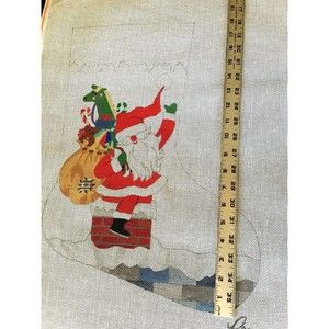 Vintage Pru Hand-painted Needlepoint Canvas 18” X 13” Santa Chimney Stocking NEW