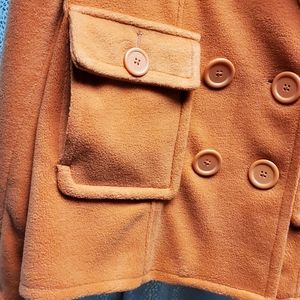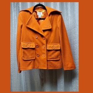 This double-breasted short peacoat with big pockets is stunning and cozy. Wide collar in back and handwarmers behind the pockets. Pre-owned from a smoke and pet free home. Excellent Condition, no stains or flaws.