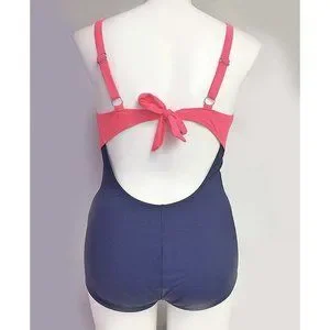Plus 1Pc Ruched Front Swimsuit Women Size 14 Navy Blue Swimwear with Front Jewel