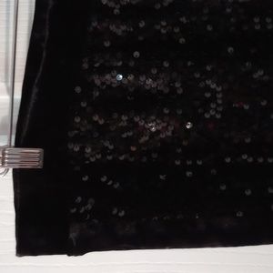 These are stunning. Black velvet elastic waste pants. So easy to wear! The front is all sequined. Waist to hem. The back is velvet.