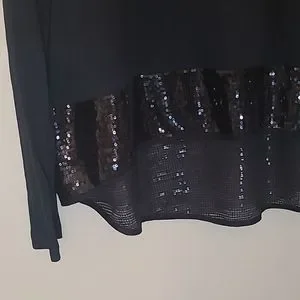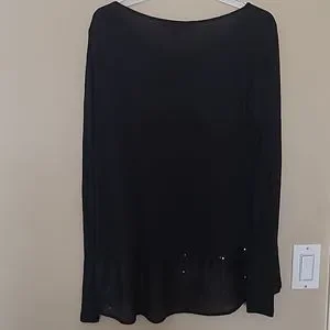 tags: BCBG All black tops, black work clothes, tunic, covers hips , sequin trim, oversized, tent dress, designer luxury, work wear womens long sleeve small , black, sequin trim, oversized, baggy, loose, top shirt tee, BCBG