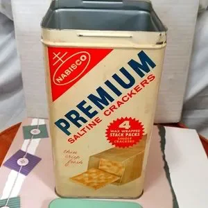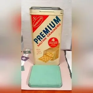 Nabisco Premium Saltine Crackers Tin Box Metal Canister Vintage 1969