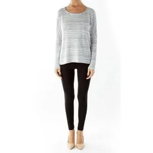 NWOT Sparkle & Fade Gray Striped Pocketed Loose Knit Top