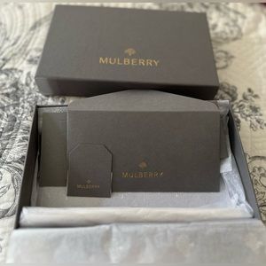 Metal lettering Mulberry signature.