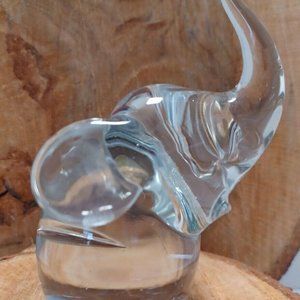 Vintage Napcoware Art Glass Elephant Figurine Paperweight Statue 4.5" Trunk Up