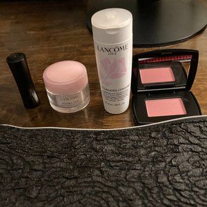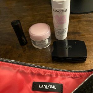 Lancome Black pouch with blush, lipstick, face cream and face wash