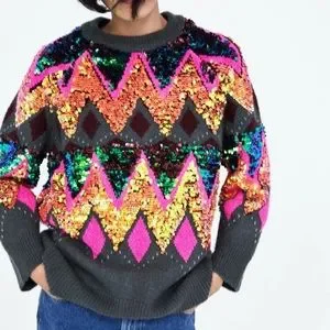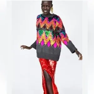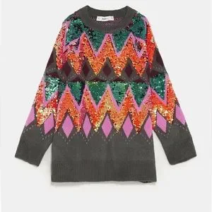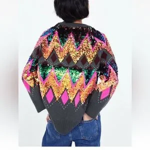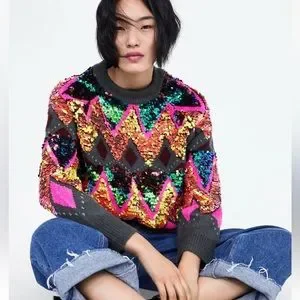 ZARA MULTICOLOR OVERSIZED SEQUIN SWEATER RARE MEDIUM M