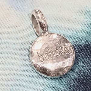 Brighton Silver Plated, Believe Token Charm. Hammer texture design, 1st side has Believe, reversible side has Beautiful Cross. NWOT. Please see all pics