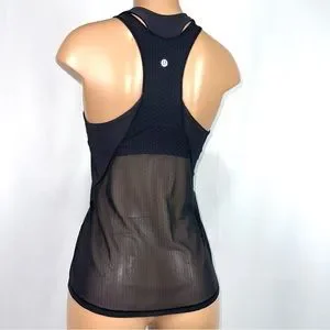 Lululemon Women’s Sz 8 Body Con Tank Top W/ Shelf Bra Black Activewear Mesh Back