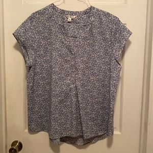 Croft & Barrow Blue/White Print Pullover Blouse Short Sleeve Womens XXL