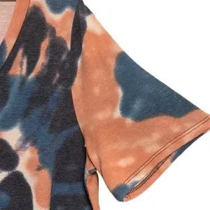 BIBI, V-Neckline, Short Sleeves, Uneven Hem Top, Multi Colors, L/XL