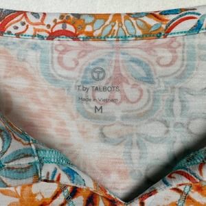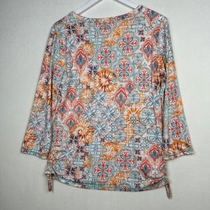 T by Talbots Women's Size M Split Neck 3/4 Sleeve Ruched Blouse Top