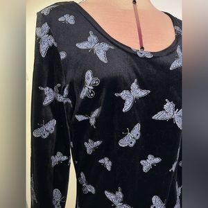Vintage 90s Velvet Butterfly Print Dress by Melinda Women’s Size M