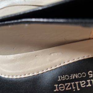 Black leather Naturalizer heels styled for comfort with rubberized soles and interior padding.