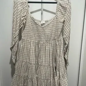 MINI ESCAPE BEIGE GINGHAM DRESS