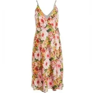 FOREVER 21 Pink Floral Sleeveless Wrap Dress M