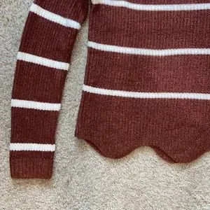 So soft and so stretchy! This is perfect for the fall! The cute scalloped hem at the bottom is such a cute addition. The fabric is 72% acrylic, 25% nylon, and 3% spandex. Like new condition from a smoke free, but single pet friendly home. Make an offer or ask questions!