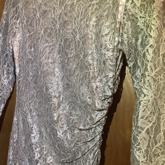 Tahari Champagne Gold Shimmering Lace Cocktail Dress 3/4 Sleeve Size 6