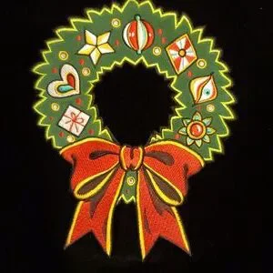 Bob Mackie Wearable Art Christmas top in a size medium. In beautiful condition (I don't think it was ever worn). Soft black velvet with wreath design on front. Hard to see in picture, but the little circles inside the wreath are beads that look like diamonds so they sparkle :)