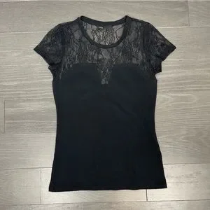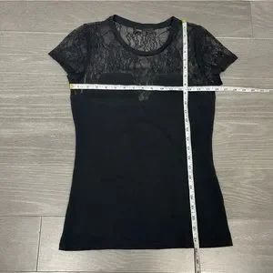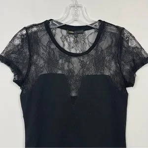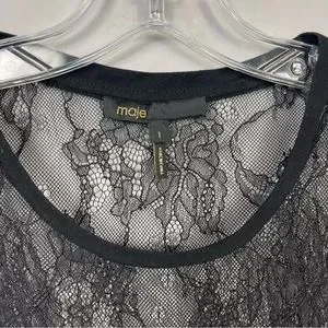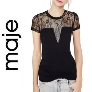 MAJE Paris Black Lace Inset Sheer Tee Shirt Top Short Sleeve Sexy 1 S Whimsigoth