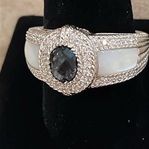 Judith Ripka Blue Topaz & Mother-of-Pearl Pineapple-Cut Ring Size NWOT