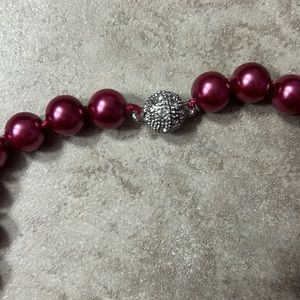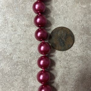 This listing is for a strand of hot pink pearls - brand new in original packaging. Item has a decent size pearl - shown with a penny to compare size and scale. Magnetic closure which is approximately the same size as a pearls - looks like a beautiful accent bead. Item comes from a smoke free, healthy home.