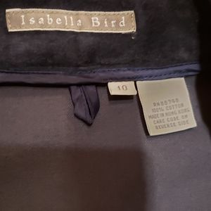Isabella Bird dark blue 100% cotton velveteen button front jacket EUC