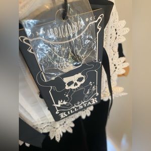 Killstar Madison black dress. NWT. Sold out online. Size Medium but runs Small in the bust. Waist 30", Bust 34". Velvet fabric with embroidery. Has some stretch.