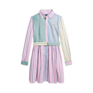 Description: Let your little one look impressive wearing the fit-and-flare silhouette Polo Ralph Lauren® Belted Oxford Fun Shirtdress & Bloomer. This beautiful dress comes with a club neckline and long sleeves with buttoned cuffs. The buttoned front closure with removable D-ring belt ensures a secure fit.
