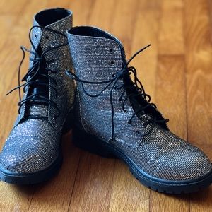 Women’s SHEIN size 40 silver sparkle combat boots. Worn once for Eras Tour movie.