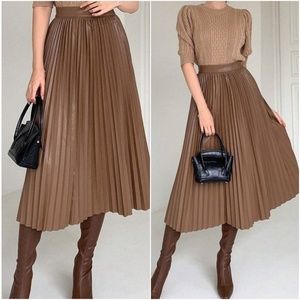 Luxe Vegan leather Accordion Pleated Midi Skirt