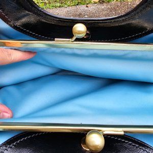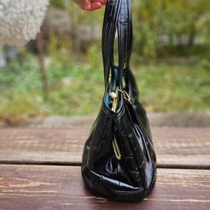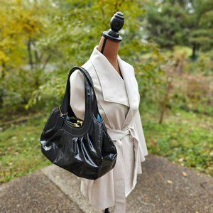 COACH Shoulder Bag Black Patent Leather Satchel Kisslock