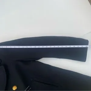 Sterlingwear of Boston Anchor Collection pea coat in traditional black wool blend with gold tone buttons. Double-breasted. Convertible collar.
