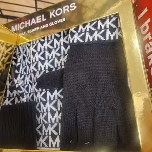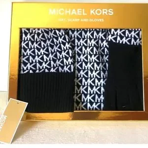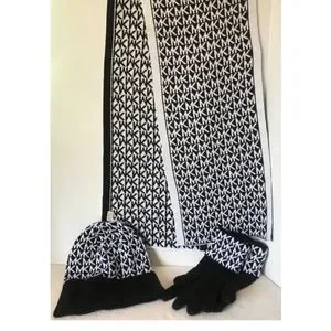 NWT~MICHAEL KORS SCARF, HAT & GLOVE SET BLACK/WHITE O/S