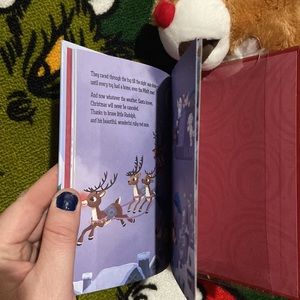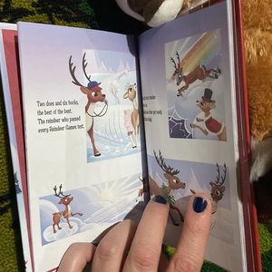 Rudolph plush stuffed animal and Rudolph and the Reindeer Games hardcover book