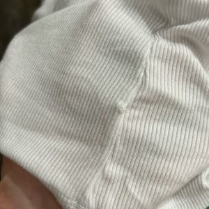 As shown in the last two pictures there was a small hole on the side seam that has been stitched up(not noticeable when on).