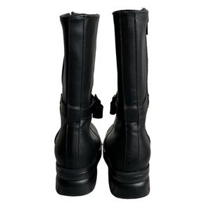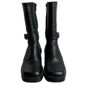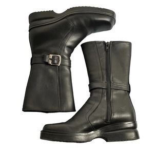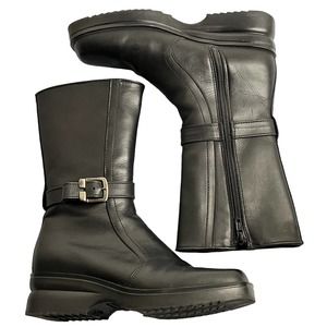 Excellent Condition. Black Leather. Made in Canada. Zipper on the side. Rugged Sole. Decorative strap with buckle on side. Never Worn. Womens Size 6.5 Medium.
